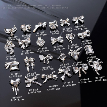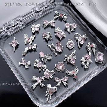 Nail Salon Bow Nail Art Silver Luxury Shining Set Love Tie Tridimensional Pearl Ribbon Decoración de uñas