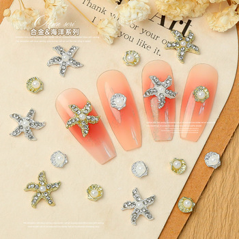 Nail Salon Exquisite Compact Summer Pentagram Starfish Pearl Shells Gold Silver Nail Art Accessories